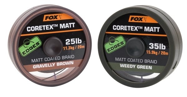 EDGES Coretex Matt van FOX ist ein weiches, geschmeidiges geflochtenes Material, mit einer einfach abzulösenden, tarnfarbenen, matten Beschichtung. In verschiedenen Farben und Tragkräften erhältlich, auf 20 Meter Spulen.