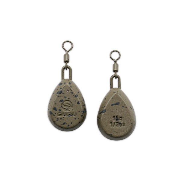 Die Guru Flat Pear Bomb ist ein Bleigewicht in Form einer abgeflachten Birne. Es hat ein stromlinienförmiges Profil und ist für den Einsatz auf schrägen Gewässerböden und in fließenden Gewässern konzipiert.