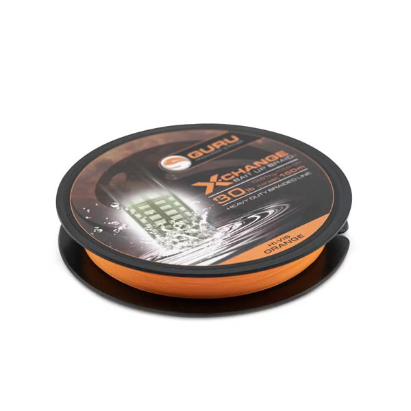 Die Guru X-Change Bait Up Braid ist eine geflochtene Angelschnur, die speziell für das Werfen schwerer Futterkörbe entwickelt wurde. Sie hat einen Durchmesser von 0,16 mm und eine Tragkraft von 13,6 kg (30 lb). Die Schnur wird auf einer 150-Meter-Spule geliefert und ist in gut sichtbarem Orange erhältlich.