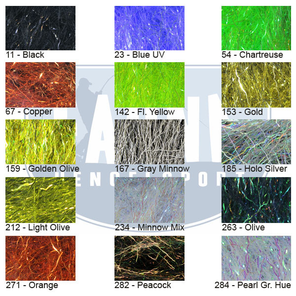 Ripple Ice Fiber von Hareline ist ein synthetisches Glitzermaterial, das in vielen Streamer-Mustern, unter anderem von Niklas Bauer, verwendet wird. Ein paar Fasern im Schwanz oder durch den Flügel geben genau das gewisse Extra. Ripple Ice Fiber kann für Hecht-, Barsch- und Zander-Streamer verwendet werden und eignet sich auch sehr gut für die Herstellung von Salzwasser-Streamern. Erhältlich in nicht weniger als 26 verschiedenen Farben!