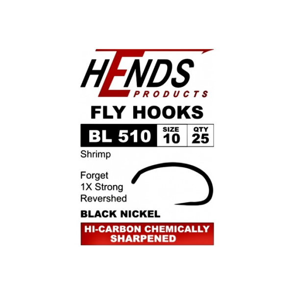 Der Hends BL510 ist ein Shrimp-Haken mit ein 1x starken Draht. Dieser Haken ist sehr geeignet für das binden von Flohkrebse, Pupa’s und so weiter. Der BL510 ist ein Hi-Carbon, chemisch geschliffen Haken in ein Black Nickel Finish.