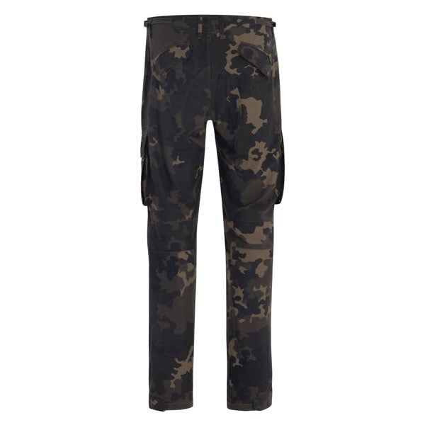 Die Korda Original Kombats Dark Kamo Hose besteht aus 150 g/m² Ripstop-Gewebe. Das Material ist leicht, schnelltrocknend, feuchtigkeitsableitend und mit einem Mückenschutzgewebe versehen. Die Hose verfügt über einen Knopf- und Reißverschluss, verstellbare Seitenschnallen, Gürtelschlaufen und insgesamt neun Taschen, darunter abschließbare und Klettverschlusstaschen.