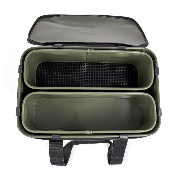 Die Korum EVA Tackle & Bait Station ist ideal für den Transport und die Vorbereitung von Futter und Köder. Die Tasche besteht aus wasserdichtem EVA-Material und verfügt über zwei Einsätze, von denen einer einen Netzboden zum Sieben von Futter und Köder hat. Die Korum EVA Tackle & Bait Station ist mit Griffen ausgestattet.