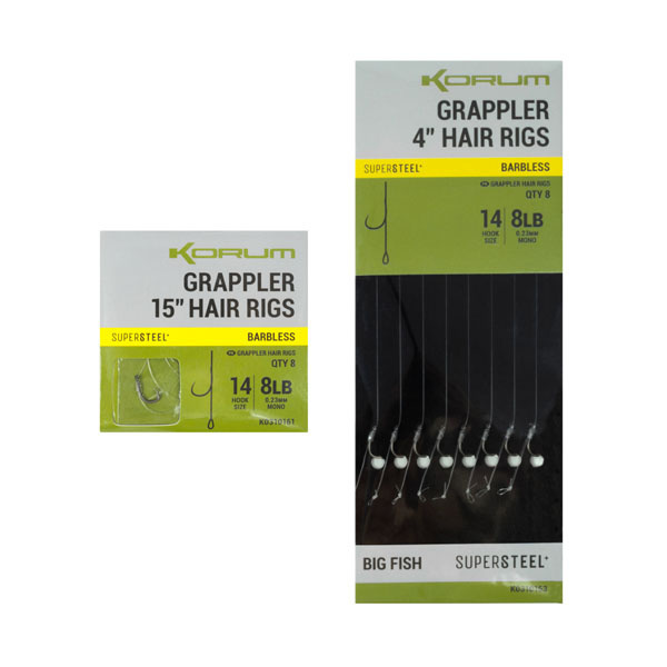 Die Korum Grappler Hair Rigs - Barbless sind für den (Method) Feeder geeignet und verfügen über widerhakenlose Haken. Zusätzlich sind die Vorfächer mit einem Hair ausgestattet, an dem der Köder befestigt werden kann. Die Korum Grappler Hair Rigs - Barbless sind in zwei verschiedenen Längen erhältlich.