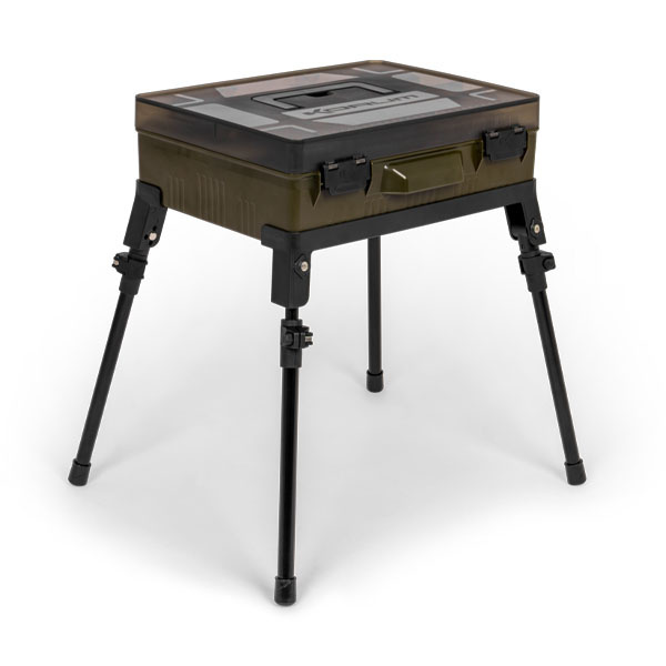 Die Korum Mega Blox Station Fully Loaded ist eine freistehende Angelbox mit einem modularen Hauptfach und festen Aufbewahrungsmöglichkeiten für Zubehör. Im Deckel befinden sich zwei flache Rig Blox zur Aufbewahrung vorgeknotener Vorfächer. Die Korum Mega Blox Station Fully Loaded verfügt über Teleskopbeine, feste Griffe, Verschlussclips, einen Dichtungsring und ein integriertes Lineal.