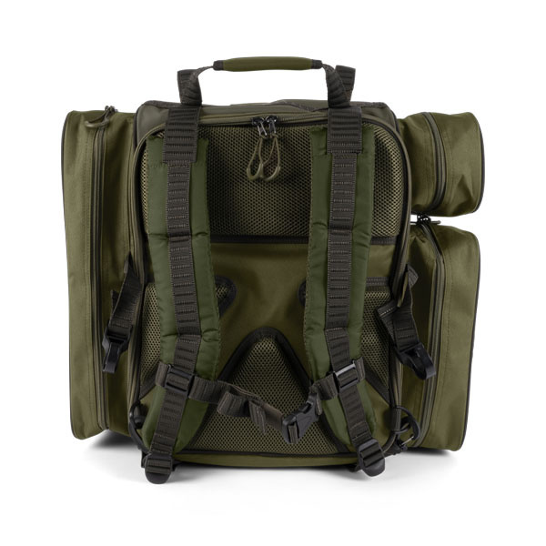 Der Korum Progress Ruckbag verfügt über ein Hauptfach und mehrere Seitentaschen zur Aufbewahrung von Gepäck und Accessoires. Er ist mit verstellbaren, gepolsterten Schultergurten und einem Brustgurt ausgestattet und kann beim Transport mit einen Stuhl kombiniert werden.