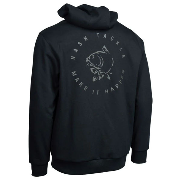 Der Nash Make It Happen Carp Logo Hoody Black besticht durch ein großes Make It Happen Karpfenlogo auf dem Rücken und ein Nash-Blocklogo auf der Brust. Er ist ideal für Angeln und Freizeit.