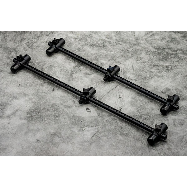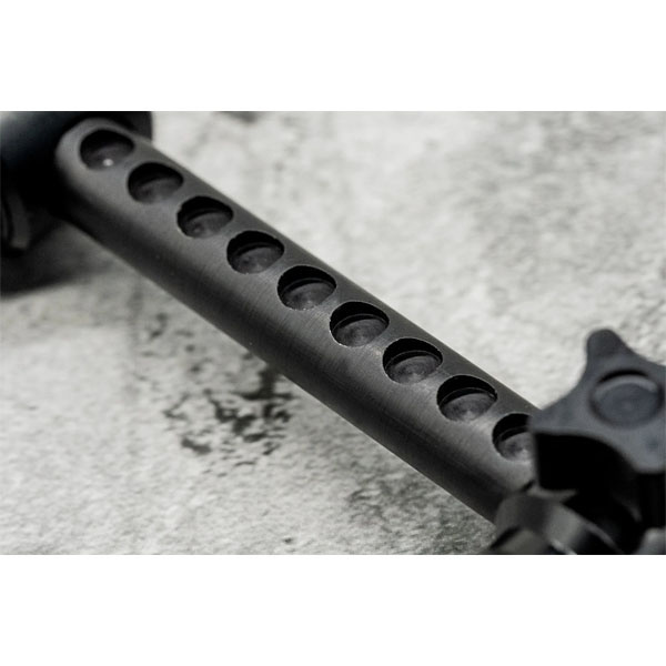 Der One More Cast Elbowz Black Anodized Aluminium ist ein Set aus zwei Buzzerbars aus schwarz anodisierten Aluminium und eignet sich für zwei oder drei Ruten. Dank des innovativen Systems sind die Gewindeverbindungen beweglich, wodurch die Buzzerbars an jede Situation angepasst werden können. Die Elbowz Black Anodized Aluminium wird mit vier Buchsen zum Schutz der Gewinde geliefert.