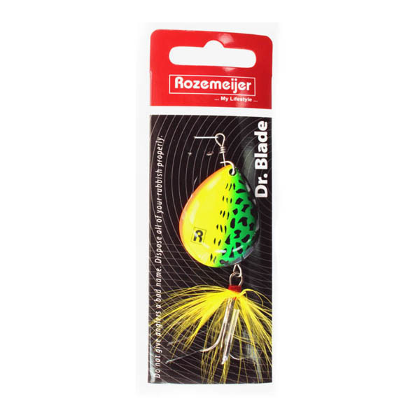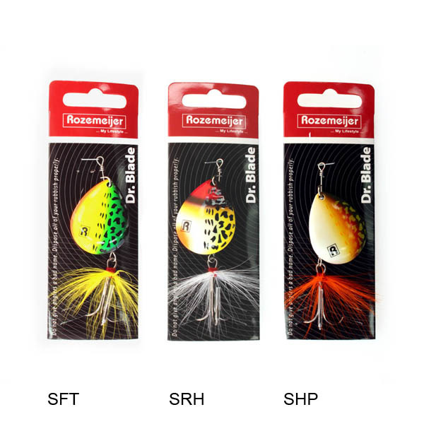 Die Dr. Blade von Rozemeijer ist ideal für das Angeln in flachen Gräben und Teichen, dank ihres geringen Gewichts sinken diese Spinner nicht so schnell. Die Dr. Blade ist in verschiedenen Größen und Farben erhältlich.