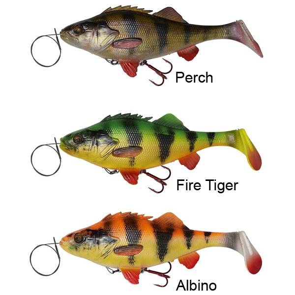 Der Savage Gear 4D Line Thru Perch ist eine schöne Nachahmung eines Barsches. Die Aktion dieses Swimbaits ist fast nicht von einem echten Barsch zu unterscheiden, so dass der Line Thru Perch selbst den hartnäckigsten Hecht verführen wird! Darüber hinaus ist dieser Swimbait mit einem verführerischen Paddelschwanz mit einer Rassel ausgestattet, der unter Wasser für zusätzlichen Aufruhr sorgt. Der Savage Gear 4D Line Thru Perch hat eine interne Führung, die während des Drills nach oben gleitet. Auf diese Weise bleibt der Swimbait lange Zeit ganz!