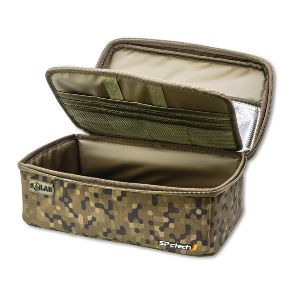 Die Solar SP C Tech Large PVA Station ist eine Aufbewahrungsstation mit einem großen Hauptfach und einer zentralen Magloc-Trennwand mit zwölf Netztaschen. Sie verfügt über elastische Werkzeughalter, eine PVA-Protect-Gewichtstasche, eine PVA-Protect-Tasche im Deckel und einen wasserdichten Boden. Die Solar SP C Tech Large PVA Station besteht aus recyceltem, wasserdichtem Solar G-Tex-Gewebe und ist in Vertabr8-Bauweise gefertigt.