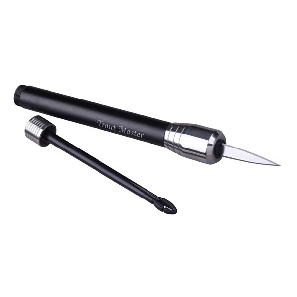 Das Spro Trout Master 3 In 1 Priest ist ein Multifunktionswerkzeug, das einen Fischtoter, ein Messer und einen Abhaker enthält. Der Griff ist aus eloxiertem Aluminium und der Kopf aus rostfreiem Stahl gefertigt. Der Abhaker und das Messer können zur sicheren Aufbewahrung in den Griff des Trout Master 3 In 1 Priest geschraubt werden.