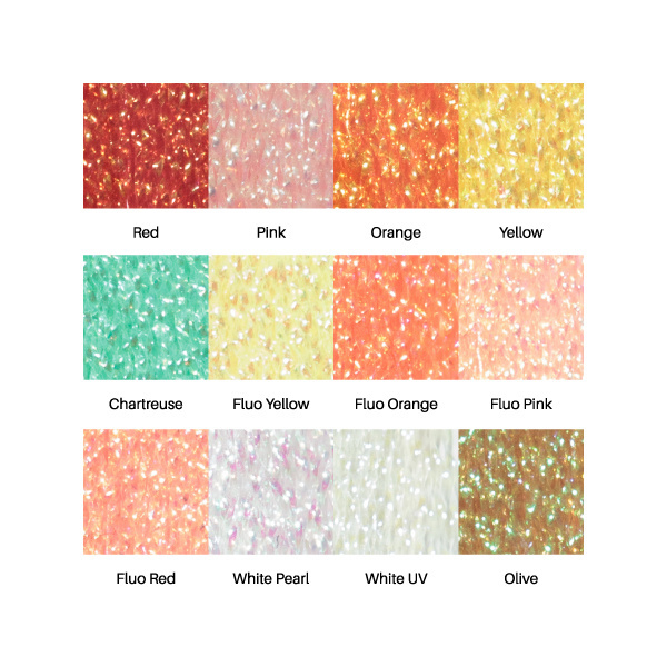 Das Textreme Crystal Flash Small sind gedrehte Flash Fiebern die nach jeder Seite Licht reflektieren unter Wasser. Das Material kann in vielen Streamer-Muster benutzt werden. Das Textreme Crystal Flash Small kann auch gut benutzt werden um Rippungen von Körper damit zu machen, so dass diese richtig gut zu sehen sind. Verfügbar in verschiedenen Farben.