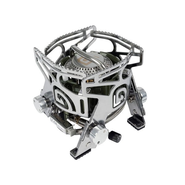 Der Trakker Armolife CG4 Stove verfügt über vier höhenverstellbare Standfüße für zusätzlichen Halt auf unebenen Oberflächen und vier Topfträger für optimalen Halt von Toastern und Pfannen. Der Kocher ist mit einem piezoelektrischen Zündsystem und einem extragroßen Gasvorheizrohr für optimale Gaseffizienz ausgestattet. Der Trakker Armolife CG4 Stove wird mit einer Nylon-Tragetasche geliefert.